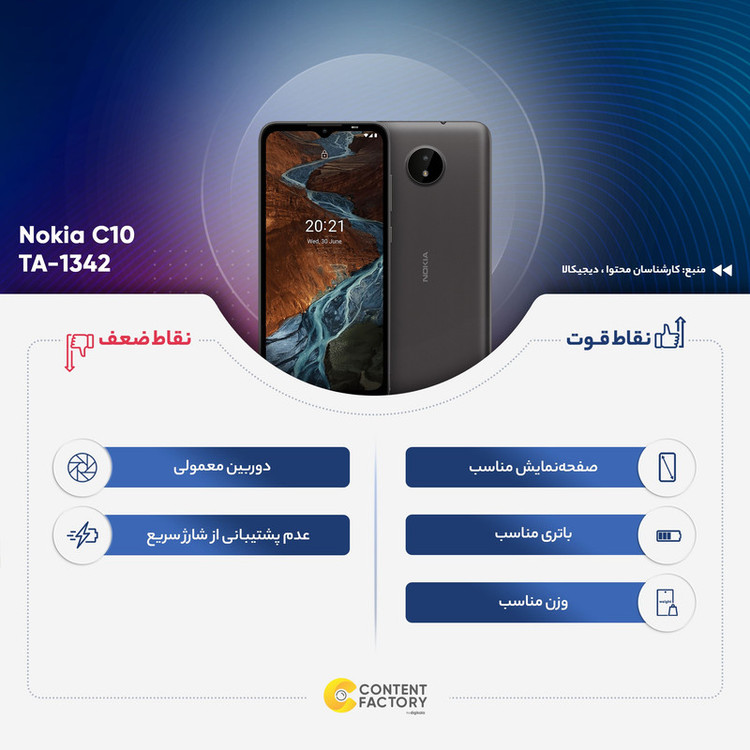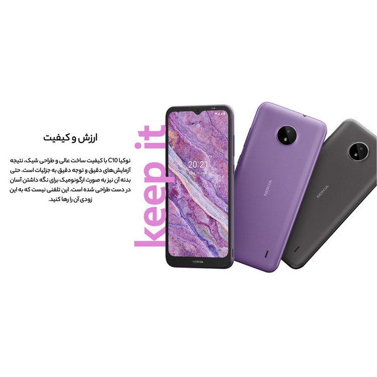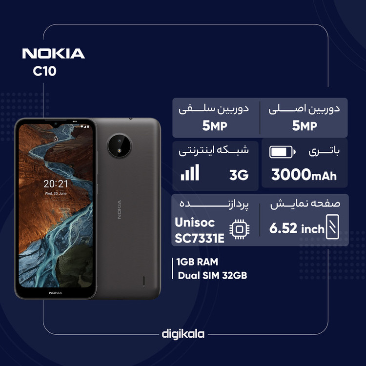 گوشی موبایل نوکیا مدل C20 دو سیم کارت ظرفیت 32 گیگابایت از سری گوشیهای باکیفیت این برند است که میتواند تمامی اکثر نیازهای ما مانند وبگردی، بازی آفلاین و آنلاین، تماشای فیلم و کلیپ، شبکههای اجتماعی، کار با اپلیکیشن و بسیاری دیگر را انجام دهید. گفتنی است که این گوشی با تمامی قابلیتهایی که دارد، یک گوشی میانرده است. مهندسان نوکیا برای گوشی C20 باتری لیتیوم-یونی با ظرفیت 3000 میلیآمپرساعت در نظر گرفتهاند که باتوجه به ظرفیت آن، عمر مطلوبی هم دارد. که نشان دهنده ظرفیت مناسب این گوشی میانرده است. از این گوشی میتوانید استفادههای بسیار متنوع و باکیفیتی در عکاسی داشته باشید. پردازنده مرکزی (CPU) و پردازنده گرافیکی (GPU) این گوشی بهاندازهای قدرت دارند که میتوانید بدون هیچگونه دغدغه و کاهش سرعت برنامههای متوسط و اجتماعی را اجرا کنید. این گوشی دارای 32 گیگابایت حافظه داخلی و 1 گیگابایت حافظه RAM رم است. گوشی نوکیا C20 دارای دوربین تکی در پشت گوشی بوده که با کیفیتهای 5 مگاپیکسل است. دوربین عکاسی سلفی نوکیا C20 دارای لنزی با رزولوشن 5 مگاپیکسل است که تصاویر مطلوبی برای استفاده در شبکههای اجتماعی و ویدئوهای رضایتبخشی برای مکالمه تصویری ایجاد میکند.