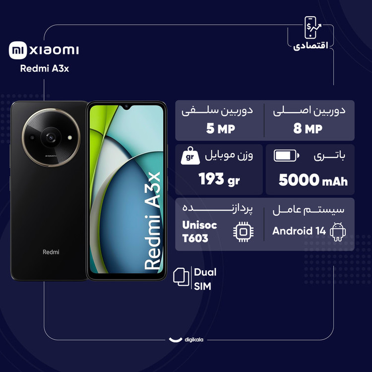 شیائومی Redmi A3x یکی از محصولات جدید این برند محبوب است که در می 2024 معرفی شده است. این گوشی با طراحی مدرن و جذاب به همراه صفحه نمایشی بزرگ، انتخابی مناسب برای کسانی است که به دنبال دستگاهی با کارایی بالا و قیمت مناسب هستند. صفحه نمایش 6.71 اینچی از نوع IPS LCD با نرخ تازهسازی 90 هرتز و روشنایی 500 نیت، تجربهای روان و دلپذیر را در اختیار کاربران قرار میدهد. محافظ گوریلا گلس3 نیز امنیت این صفحه نمایش را تضمین میکند. این گوشی با دوربین پشتی هشت مگاپیکسلی و دوربین جلوی پنج مگاپیکسلی امکان ثبت لحظات روزمره و سلفیهای باکیفیت را فراهم میکند. پردازندهی هشت هستهای Unisoc T603 با اندروید 14 و رابط کاربری MIUI، عملکردی روان و بدون تاخیر را ارائه میدهد. باتری 5000 میلیآمپر ساعتی و شارژ 10 واتی نیز به کاربران این امکان را میدهد تا مدت زمان بیشتری از دستگاه خود استفاده کنند. با پشتیبانی از دو سیمکارت، حسگر اثر انگشت در کنار بدنه و حافظه 128 گیگابایتی، این گوشی یک انتخاب مناسب برای نیازهای روزمره است. گفتنیست که این گوشی موبایل از قابلیت display over other apps پشتیبانی نمیکند.