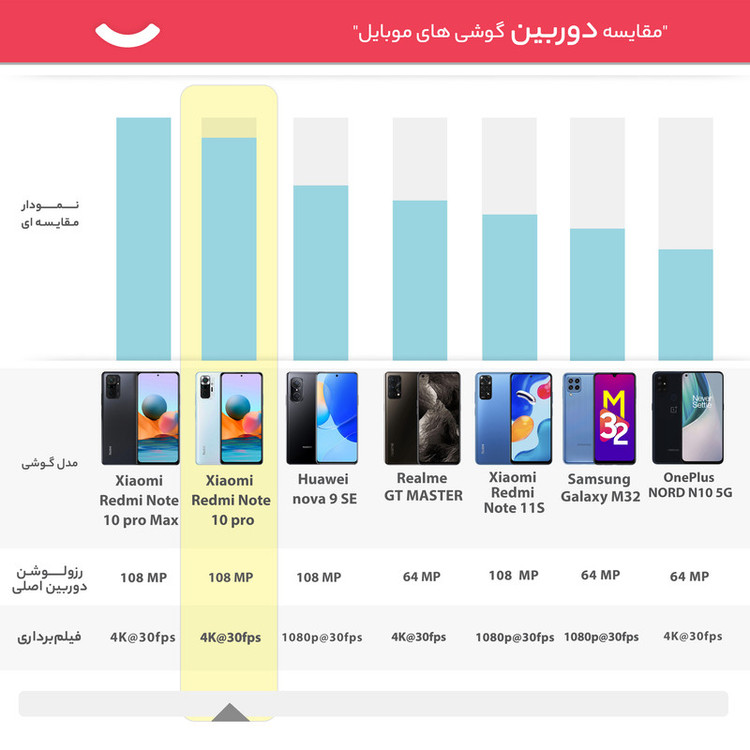 گوشی موبایل شیائومی مدل Redmi Note 10 pro دو سیم کارت ظرفیت 128 گیگابایت وارد بازار شده است. شیائومی در مارس 2021، نسل دهم از گوشیهای Redmi Note خود را معرفی کرده است. گوشی « Redmi Note 10 pro » مانند نسخههای قبلی این سری از گوشیهای شیائومی از صفحهنمایش بزرگ، باتری پرقدرت، طراحی جذاب دوربین و سختافزار مناسب برای اجرای بازی برخوردار است. این مدل با پنل AMOLED ساختهشده و فاصله لبه صفحهنمایش در آن بسیار کم است. این نمایشگر 6.67 اینچی حدود 395 پیکسل را در هر اینچ جا داده است. بدنه و نمایشگر این محصول با استفاده از Corning Gorilla Glass 5 محافظت میشود تا گوشی در برابر خط وخش ایمن باشد. ویژگی دیگر Redmi Note 10 pro مجهز شدن به حسگر اثرانگشت بر روی لبه کناری آن است. شیائومی برای این محصول خود از یک دوربین چهارگانه استفاده کرده است. لنزعریض 108 مگاپیکسلی، لنز فوق عریض 8 مگاپیکسلی، لنز ماکرو با کیفیت 5 مگاپیکسل و سنسور عمق 2 مگاپیکسلی مجموعه دوربین Redmi Note 10 pro را تشکیل میدهد. یک دوربین سلفی 16 مگاپیکسلی هم در مرکز بالای نمایشگر این گوشی به کار گرفته شده است. ازنظر سختافزاری هم این گوشی از تراشه Snapdragon 732G بهره میبرد که در آن پردازندهای هشتهستهای و قدرتمند قرارگرفته است. حافظه رم با ظرفیت 6 گیگابایت هم در کنار این مجموعه قرار گرفته است تا بتواند علاوهبر کارهای معمول، از قابلیتهای جدید گوشیهای امروزی پشتیبانی کند. باتری 5020 میلیآمپرساعتی با پشتیبانی از شارژ سریع 33 وات، درگاه ارتباطی USB Type-C 2.0 و جک 3.5 میلیمتری صدا هم از دیگر مشخصات این محصول جدید است.