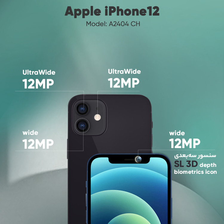 گوشی موبایل iPhone 12 A2404 CH پرچمدار جدید شرکت اپل است که با چند ویژگی جدید و دوربین دوگانه روانه بازار شده است. نمایشگر آیفون 12 به پنل Super Retina مجهز شده است تا تصاویر بسیار مطلوبی را به کاربر عرضه کند. این نمایشگر رزولوشن بسیار بالایی دارد؛ بهطوریکه در اندازهی 6.1 اینچیاش، حدود 460 پیکسل را در هر اینچ جا داده است که دقیقاً با تراکم پیکسلی iPhone XS برابر است. قاب پشتی آیفون جدید هم از شیشه ساخته شده تا هم گوشی مشکل آنتندهی نداشته باشد و هم امکان شارژ بیسیم باتری در این گوشی وجود داشته باشد. البته قابی فلزی این بدنه شیشهای را در خود جای داده است. این بدنهی زیبا در مقابل خطوخش مقاومت زیادی دارد؛ پس خیالتان از این بابت که آب و گردوغبار بهراحتی روی آیفون 12 تأثیر نمیگذارد، راحت باشد. علاوهبراین لکه و چربی هم روی این صفحهنمایش باکیفیت تأثیر چندانی ندارند اما این هم پایان کار نیست، آیفون جدید میتواند به مدت 30 دقیقه در عمق 6 متری آب دوام بیاورد. تشخیص چهره با استفاده از دوربین جلو دیگر ویژگی است که در آیفون جدید اپل به کار گرفته شده است. قابلیت اتصال به شبکههای 4G و 5G، بلوتوث نسخه 5، نسخهی 14 از iOS دیگر ویژگیهای این گوشی هستند. ازنظر سختافزاری هم این گوشی از تراشهی جدید A14 بهره میبرد که تا بتواند علاوه بر کارهای معمول، از قابلیتهای جدید واقعیت مجازی که اپل این روزها روی آن تمرکز خاصی دارد، پشتیبانی کند. به گفته خود شرکت اپل این گوشی دارای سرعتی 80 برابر نسخه 11 خود است. پارت نامبر این گوشی A2404 CH است که متعلق به کشور چین است. گوشیهای نات اکتیو با قرار گرفتن سیمکارتهای داخلی اکتیو میشوند و برخلاف مدل اکتیو پلمپ کالا باز نشده است. گوشیهای اکتیو برند اپل هم به این شکل هستند که به دلیل محدودیتهای برخی از محصولات اپل برای کشور ایران، در کشورهای همسایه بهصورت رسمی با یک بار قرار گرفتن سیمکارت، اکتیو شده و پلمپ میشوند و باید بدانید که این پروسه هیچ مشکلی در راستای گارانتی کالا بههمراه ندارد. پارتنامبرهای اروپا و ژاپن و امارات تک سیمکارت هستند و پارتنامبرهای مربوط به امارات هم از فیس تایم پشتیبانی نمیکنند. پارتنامبر JA (ژاپن) هم حتی در حالت سایلنت صدای شاتر عکس قطع نمیشود.