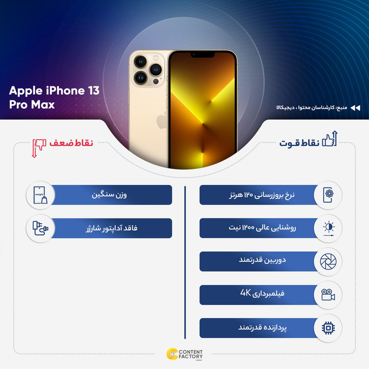 بدون هیچ تعریف اضافی باید بگوییم که iPhone 13 Pro Max یکی از قدرتمندترین گوشیهای هوشمند پرچمدار موجود در بازار است که توانست رکوردهای جدیدی را به نام خودش ثبت کند. این گوشی به صفحهنمایش 6.7 اینچ و رزولوشن 2778x1284 با توانایی نمایش 458 پیکسل در هر اینچ، نرخ بروزرسانی 120 هرتز، حداکثر روشنایی 1200 نیت (nits)، تمام هرآنچه از یک صفحهنمایش باکیفیت توقع دارید را در اختیارتان میگذارد. در قسمت پشتی سه سنسور دوربین به همراه یک سنسور LIDAR با همان طراحی آیفون 12 پرو مکس قرار گرفتهاند. یک سنسور دوربین اصلی با رزولوشن 12 مگاپیکسلی با گشودگی دریچه دیافراگم f/1.5، سنسور دوربین 12 مگاپیکسلی از نوع فوق عریض (Ultra Wide) و سنسور 12 مگاپیکسلی از نوع تله فوتو، دوربین سهگانه آیفون 13 پرو مکس را تشکیل می دهند. البته سنسور TOF 3D LiDAR scanner هم برای این گوشی در نظر گرفته شده است که عملکردی مشابه ولی بهتر از سنسور سنجش عمق را دارد و قابلیتهای جذابی را در اختیارتان قرار میدهد. پردازنده A15 بایونیک هم اینبار قدرتمند تر از همیشه متشکل از شش هسته این پرچمدار قدرتمند را همراهی میکند. حض.ر چنین پردازندهای سبب شاهد تا iPhone 13 Pro Max به راحتی هرچه تمامتر از پس اجرای سنگینترین بازیهای روز دنیا بربیاید. باتری قدرتمند با میزان ظرفیت 4352 میلیآمپرساعت این گوشی هم توانایی ارائه طول عمر مفید بهتری به نسبت بسیاری از پرچمداران شرکتهای دیگر به ازای هر بار شارژ صد درصدی دارد. در مجموع اگر به دنبال یک پرچمدار همه جیز تمام و البته با اصالت هستید، قطعا iPhone 13 Pro Max یکی از بهترین انتخابهای ممکن برای شما است. گوشیهای نات اکتیو با قرار گرفتن سیمکارتهای داخلی اکتیو میشوند و برخلاف مدل اکتیو پلمپ کالا باز نشده است. گوشیهای اکتیو برند اپل هم به این شکل هستند که به دلیل محدودیتهای برخی از محصولات اپل برای کشور ایران، در کشورهای همسایه بهصورت رسمی با یک بار قرار گرفتن سیمکارت، اکتیو شده و پلمپ میشوند و باید بدانید که این پروسه هیچ مشکلی در راستای گارانتی کالا بههمراه ندارد. پارتنامبرهای اروپا و ژاپن و امارات تک سیمکارت هستند و پارتنامبرهای مربوط به امارات هم از فیس تایم پشتیبانی نمیکنند. پارتنامبر JA (ژاپن) هم حتی در حالت سایلنت صدای شاتر عکس قطع نمیشود.