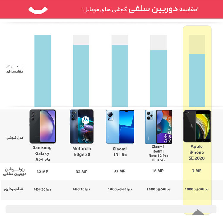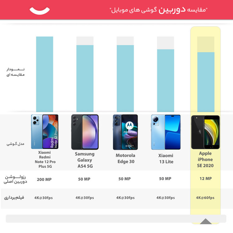 سری گوشیهای هوشمند SE با قیمتی مقرون بهصرفهتر به نسبت پرچمداران این شرکت روانه بازار شدند و در برخی از موارد هم چیزی کم از پرچمداران گرانقیمت این شرکت نداشتند. اپل iPhone SE 2020 هم یکی از این محصولات است. از نظر ظاهری این گوشی تفاوت چندانی با نسل قبلی خود ندارد و یادآور طراحی کلاسیک و نوستالژی گوشیهای قدیمیتر اپل است. صفحهنمایش با ابعاد 4.7 اینچی این گوشی با توانایی ارائه رزولوشن 750×1334 پیکسل و نمایش 326 پیکسل در هر اینچ، وضوح تصویر مناسب و باکیفیتی را ارائه میکند. در قسمت پشتی تنها یک سنسور با رزولوشن 12 مگاپیکسل برای این گوشی در نظر گرفته شده که عملکردی در حد و اندازه پرچمداران این شرکت دارد. دوربین سلفی 7 مگاپیکسل هم برای عکاسی در نور روز عملکرد کاملا قابل قبولی دارد. در بخش مشخصات سختافزاری هم حضور پردازنده قدرتمند A13 بایونیک اپل سبب شده تا iPhone SE 2020 در اجرای بازیهای محبوب و نرمافزارهای کاربردی، عملکرد بسیار خوبی داشته باشد. باتری با میزان ظرفیت 1821 میلیآمپرساعت در کنار پشتیبانی از فناوری شارژ سریع 18 وات، از دیگر مشخصات در نظر گرفته شده هستند. در مجموع باید بگوییم که اگر به دنبال خرید گوشی مقرون بهصرفهای از برند اپل هستید که طراحی نوستالژی داشته باشد و عملکرد بسیار خوب و قابل قبولی را به نسبت قیمت در نظر گرفته شده ارائه کند، اپل iPhone SE 2020 میتواند یکی از بهترین گزینههای ممکن برای شما باشد.