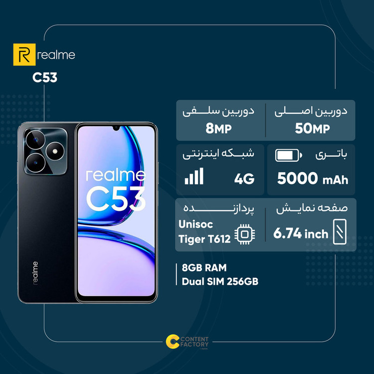 گوشی موبایل ریلمی مدل C53 دو سیم کارت ظرفیت 256 گیگابایت و رم 8 گیگابایت