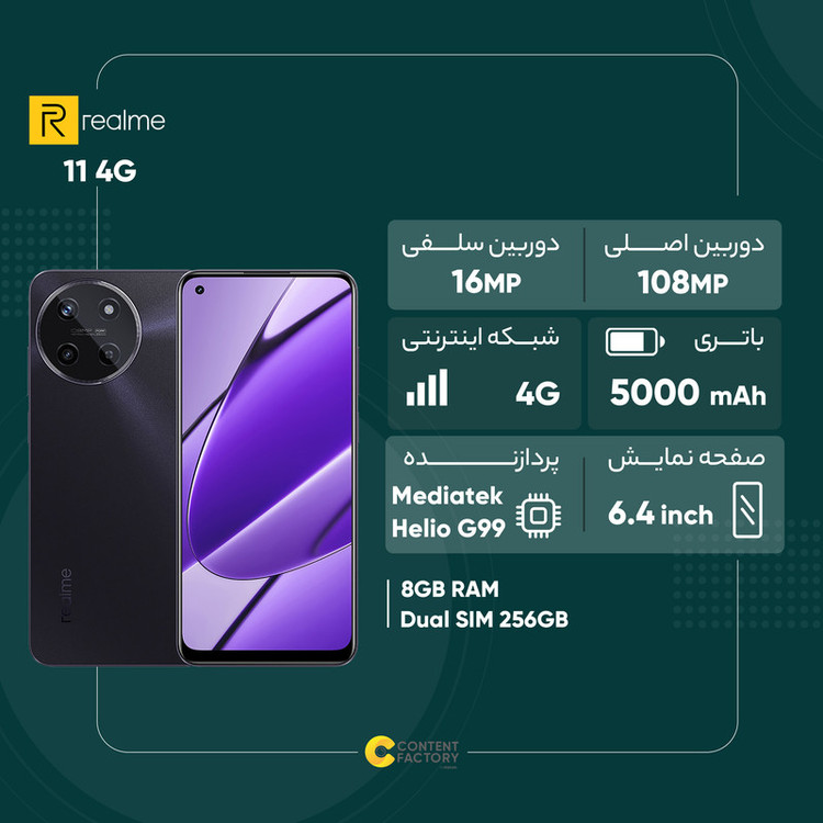 گوشی موبایل ریلمی مدل 11 4G دو سیم کارت ظرفیت 256 گیگابایت و رم 8 گیگابایت