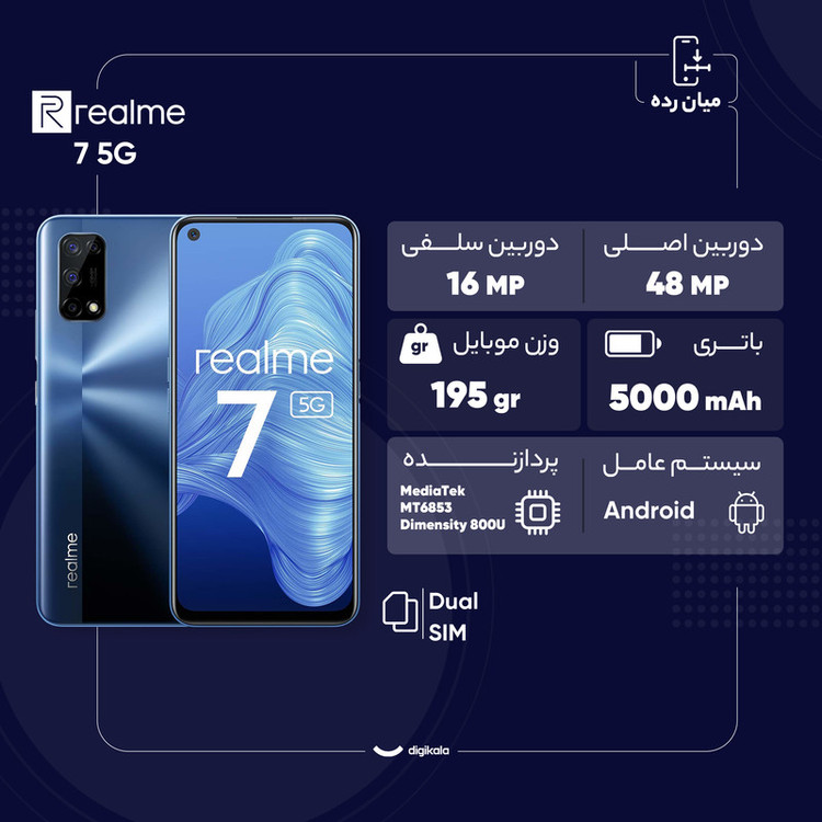 گوشی موبایل ریلمی مدل 7 5G دو سیم کارت ظرفیت 128 گیگابایت و رم 8 گیگابایت