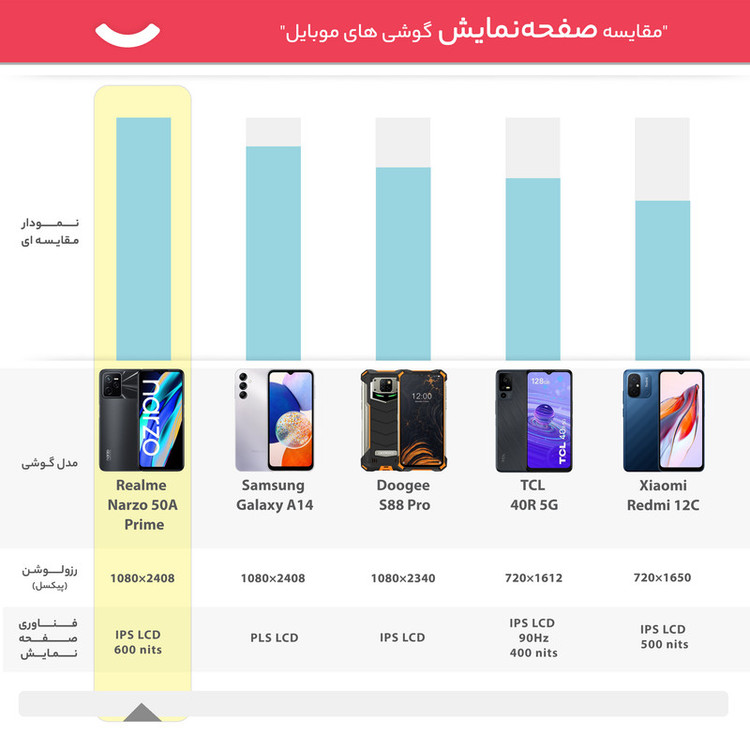 باید قبول کنیم که برند ریلمی در زمینه گوشیهای هوشمند و به خصوص گوشیهای میانرده عملکرد بسیار خوبی را با معرفی محصولات باکیفیت به نمایش گذاشته است. یکی از محصولات مقرون بهصرفه با ارزش خرید بالا، ریلمی Narzo 50A Prime است. در نمای روبهرویی، صفحهنمایش 6.6 اینچ با رزولوشن 1080×2408 پیکسل که توانایی نمایش 400 پیکسل را در هر اینچ دارد، وضوح تصویر بسیار خوب و باکیفیت را در شرایط نوری متنوع ارائه میکند. در بخش سنسورهای دوربین هم حضور سنسور دوربین عریض (اصلی) قدرتمند با رزولوشن 50 مگاپیکسل سبب شده تا در نور روز و نور شب تصاویر باکیفیتی را ثبت کنید. سنسور دوربین 2 مگاپیکسل ماکرو برای ثبت تصاویر از فاصله نزدیک و سنسور 0.3 مگاپیکسل سنجش عمق، دو سنسور دوربین دیگر قسمت پشتی این گوشی را تشکیل میدهند. برای دوربین سلفی هم سنسور با رزولوشن 8 مگاپیکسل در نظر گرفته شده که در نور روز عملکرد مناسبی دارد. حضور پردازنده میانرده Unisoc Tiger T612 هم سبب شده تا ریلمی Unisoc Tiger T612 در اجرای بازیهای نهچندان سنگین و نرمافزارهای کاربردی عملکرد کاملا قابل قبولی داشته باشد. در نهایت باتری 5000 میلیآمپرساعتی این گوشی هم به ازای هر بار شارژ صد درصدی در حالت استفاده معمولی، طول عمر مفید (زمان آماده بهکار) نزدیک به دو روز را ارائه میکند. در مجموع باید بگوییم که اگر به دنبال خرید گوشی میانرده مقرون بهصرفهای هستید که از صفحهنمایش باکفیت، سنسور دوربین اصلی قدرتمند، پردازنده مناسب برای کارهای روزمره بهره برده باشد، ریلمی Narzo 50A Prime میتواند یکی از انتخابهای مناسب برای شما باشد.